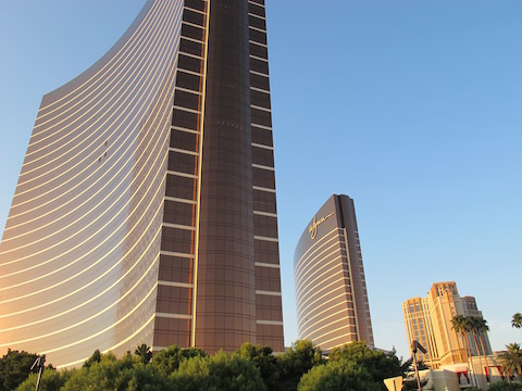 La réceptionniste nous informe que la chambre qui nous est attribuée se situe au 15 ème étage. En réfléchissant un peu, nous nous apercevons que c’est plutôt bas (le Wynn compte 60 étages): la vue risque d’être un peu décevante. Comme à chaque fois , nous tentons aimablement le coup du free upgrade, mais cette année sans succès.